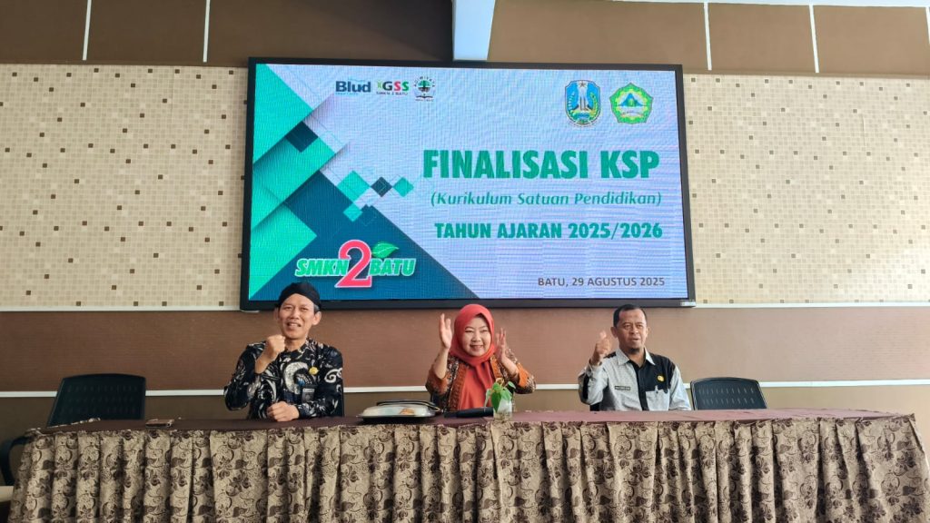 SMK NEGERI 2 Batu terus berupaya meningkatkan mutu pendidikan melalui Workshop Kurikulum Satuan Pendidikan (KSP). Kegiatan ini menghadirkan narasumber utama, Dr. Hj. Hastini Ratna Dewi, M.Pd. selaku Kepala Cabang Dinas Pendidikan Wilayah Malang, serta Pudji Tjahjo Buana, S.T., M.Pd., Pengawas Cabang Dinas Pendidikan Wilayah Malang, yang memaparkan materi sekaligus memberikan pembinaan.